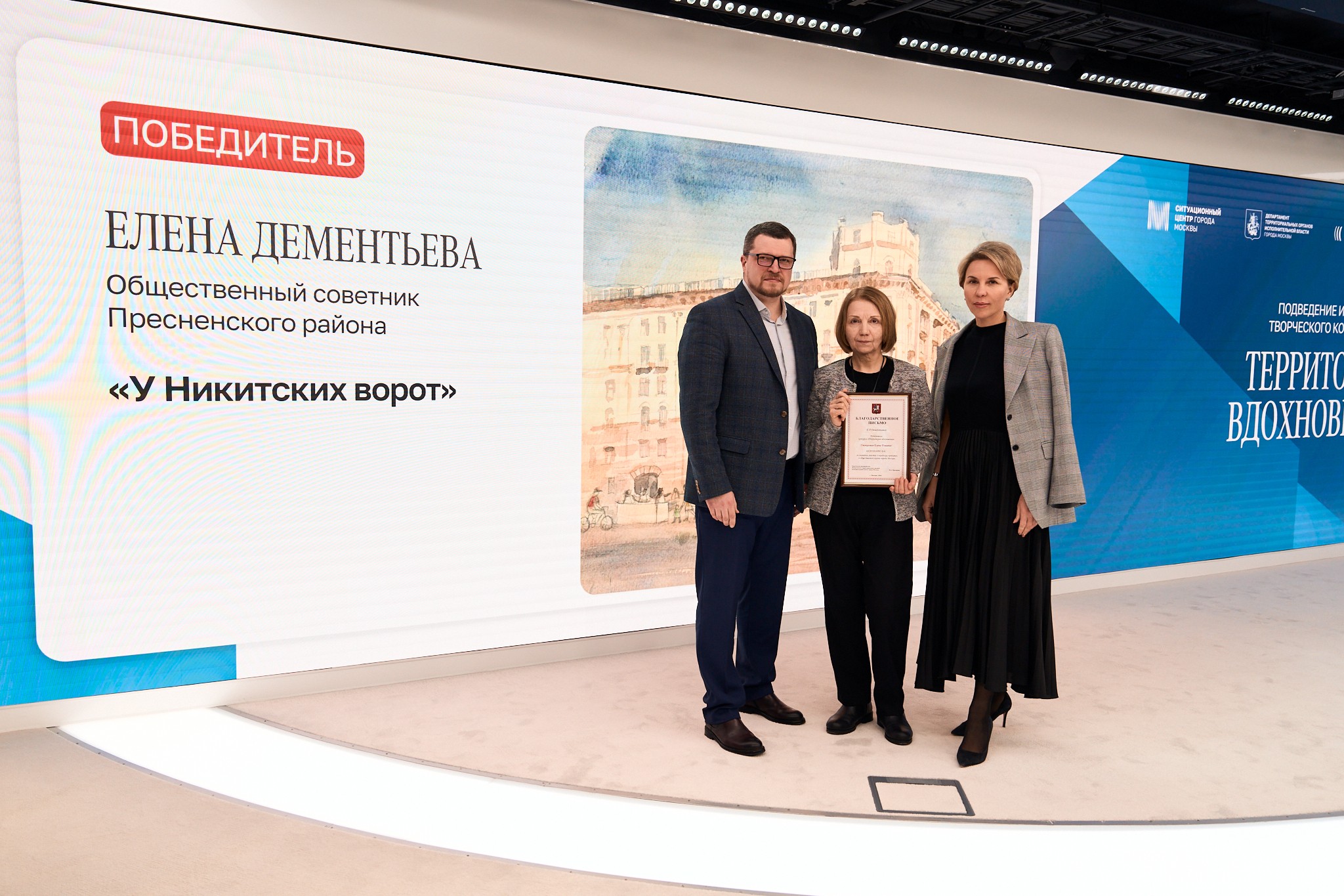 Заместитель руководителя Департамента территориальных органов исполнительной власти г. Москвы Марина Александровна Прозорова поблагодарила участников и отметила несомненный талант авторов.
